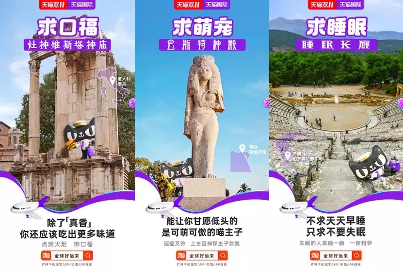 今年雙11,天貓國際針對(duì)用戶的求生發(fā)、求睡眠、求健康、求財(cái)富等需求痛點(diǎn),遍訪全球的好運(yùn)圣地,如意大利的特萊維少女噴泉、埃及的貓神殿、日本的御發(fā)神社、希臘的酒神劇場等,為消費(fèi)者帶來全球9大好運(yùn)!11月1日起,天貓國際開啟”全球好運(yùn)來“驚喜活動(dòng),用戶只需動(dòng)動(dòng)手指,打開手機(jī)淘寶搜索”全球好運(yùn)來“,即可獲得全世界的好運(yùn)氣。目前該活動(dòng)上線已經(jīng)突破100萬PV,#全球好運(yùn)來#話題閱讀量達(dá)到1.2億。其中,消費(fèi)者最青睞的TOP3的好運(yùn)為:求財(cái)富、求愛情、求酒量。